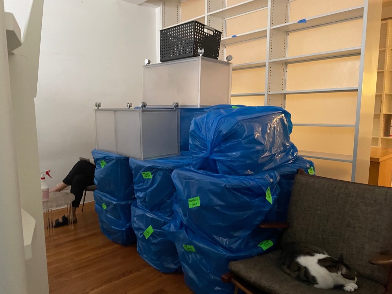 We handle your belongings with great care. We know you’re relying on us during a most difficult time, and we take that responsibility seriously. We check, clean, and bubble wrap items, before packing them into a heavy-duty construction grade bag, which is then placed inside a bin which is sealed with tape and properly labeled. Then we stack your belongings in the middle of a safe room or out of the way so the exterminator can easily and effectively do their job.